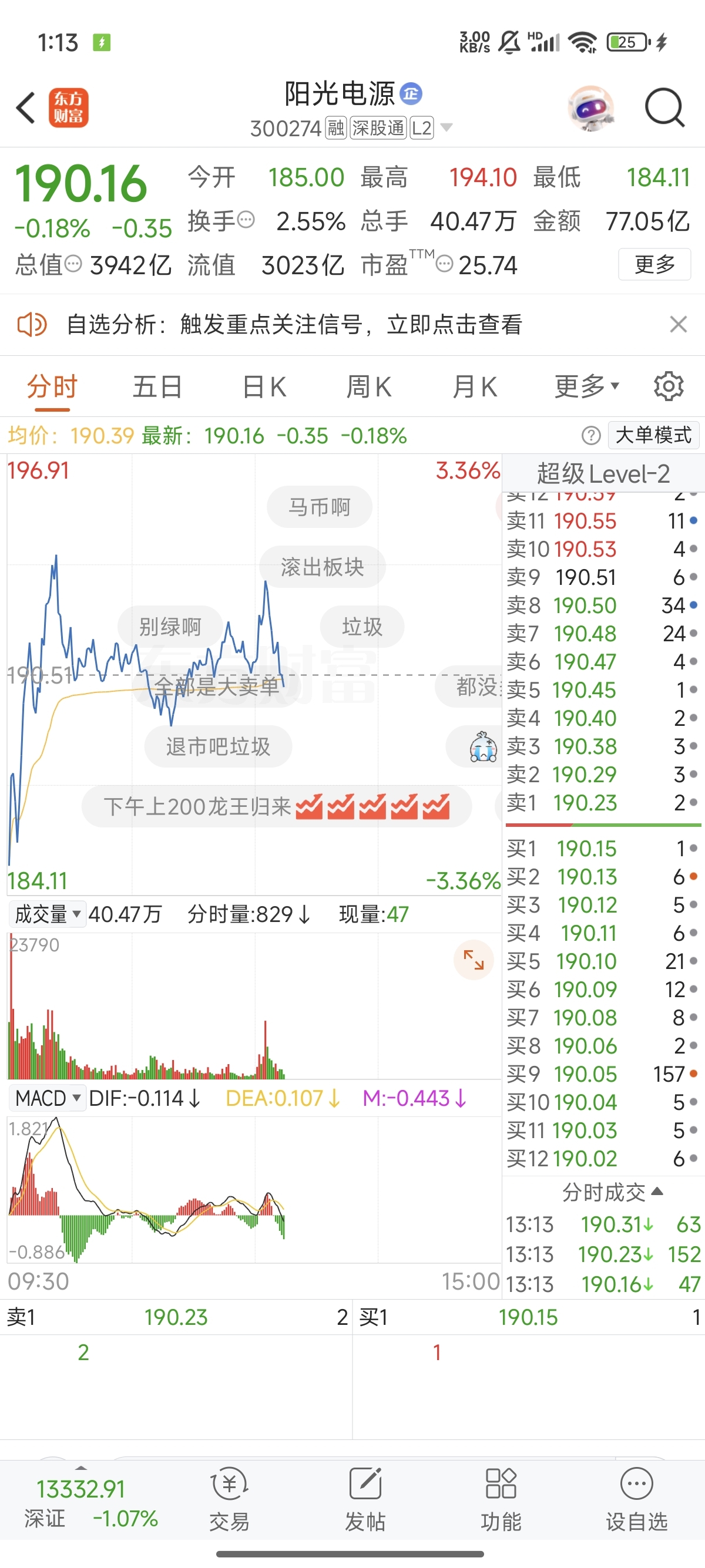 $阳光电源(SZ300274)$ 闲来无事,看到弹幕想笑,犹记得前几天有人说它是光伏为什么不涨,有大仙装b说它是储能,结果今天人家光伏涨也不带你咯哈哈哈哈哈哈,自作孽不可活