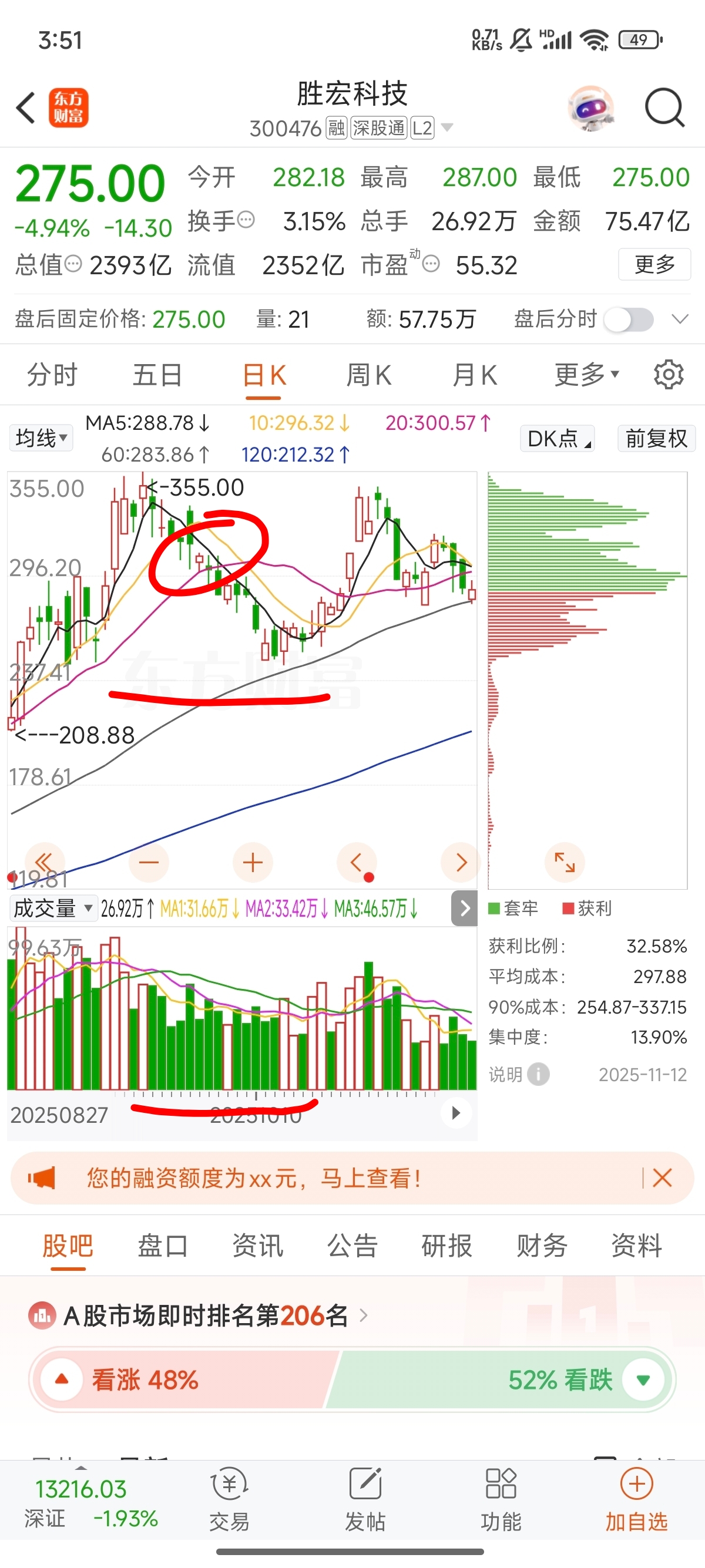 我的粉丝朋友们,等到横盘企稳再进,不然现在进厂抄底容易抄到半山腰上,参考胜宏啊