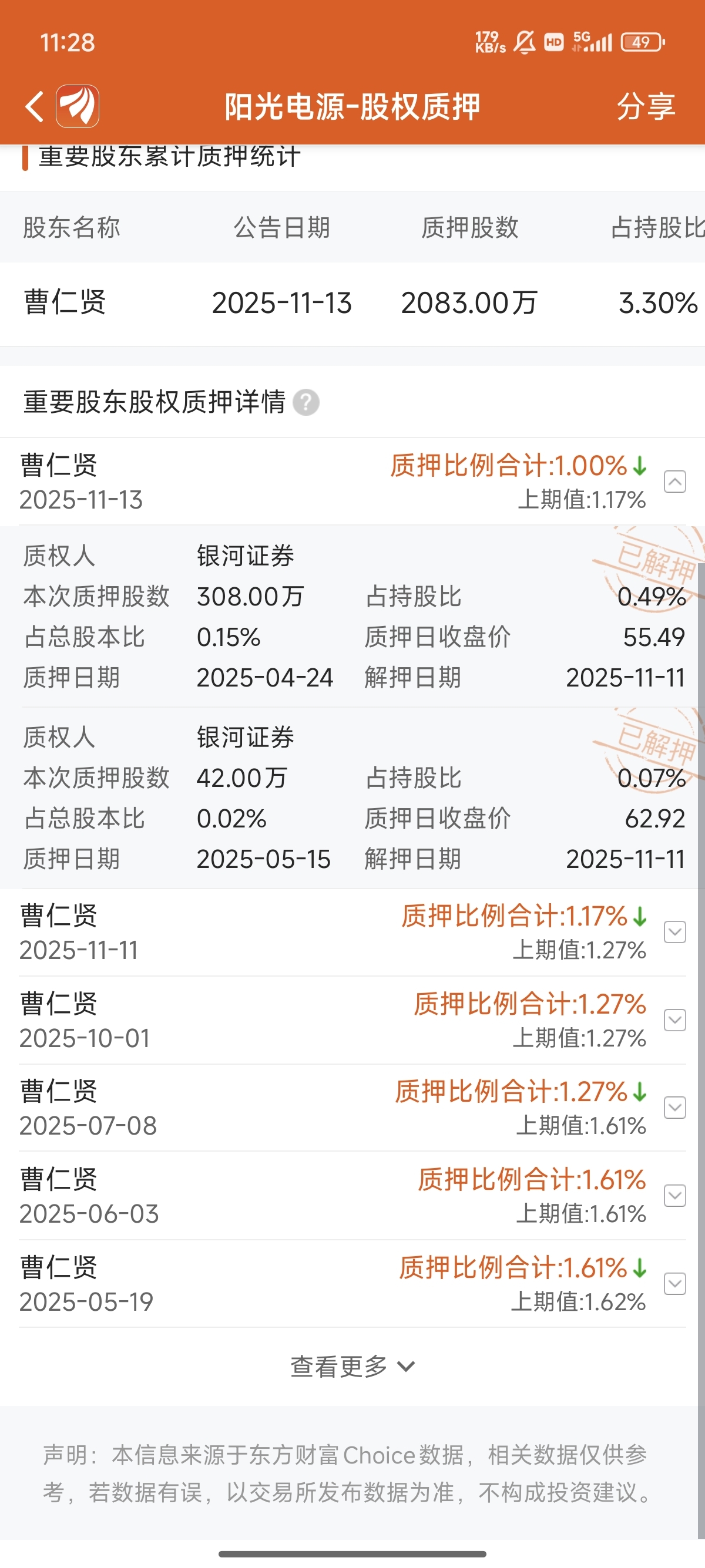 $阳光电源(SZ300274)$ 失误了,明天跑了,老曹最近解除质押也有可能询价转让了