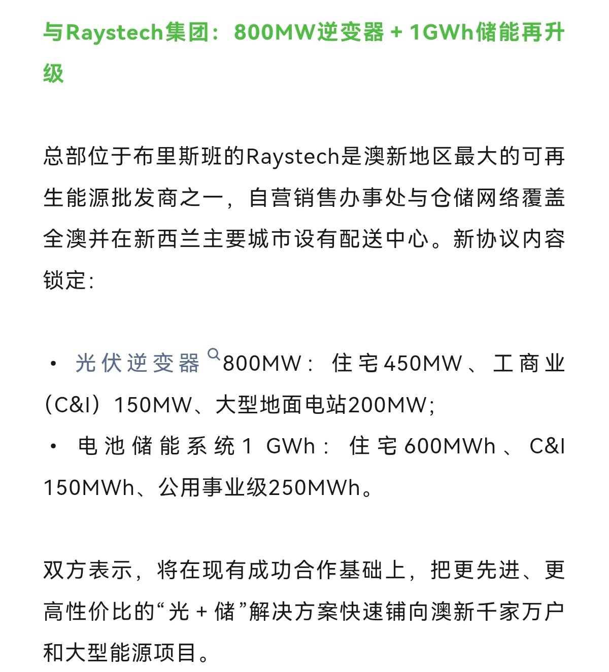 阳光电源又拿下澳洲800MW逆变器、IGWh储能