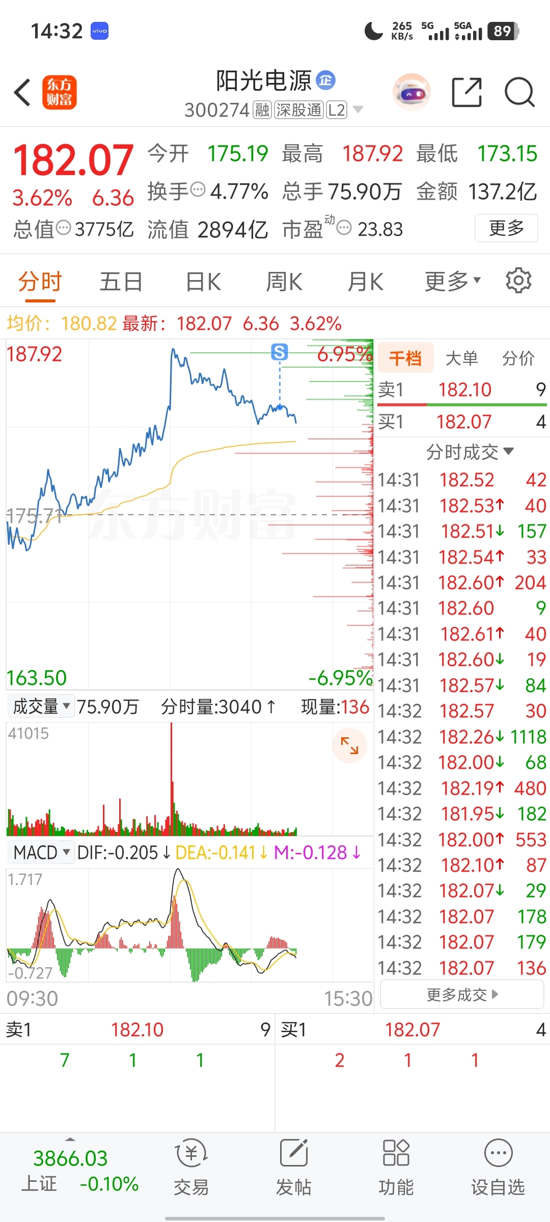 $阳光电源(SZ300274)$ 跑的有点慢了,明天低点再接回来