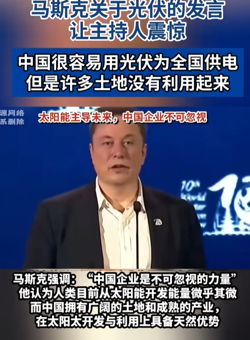 马斯克说中国使用安装太阳能很方便,ai不缺电力