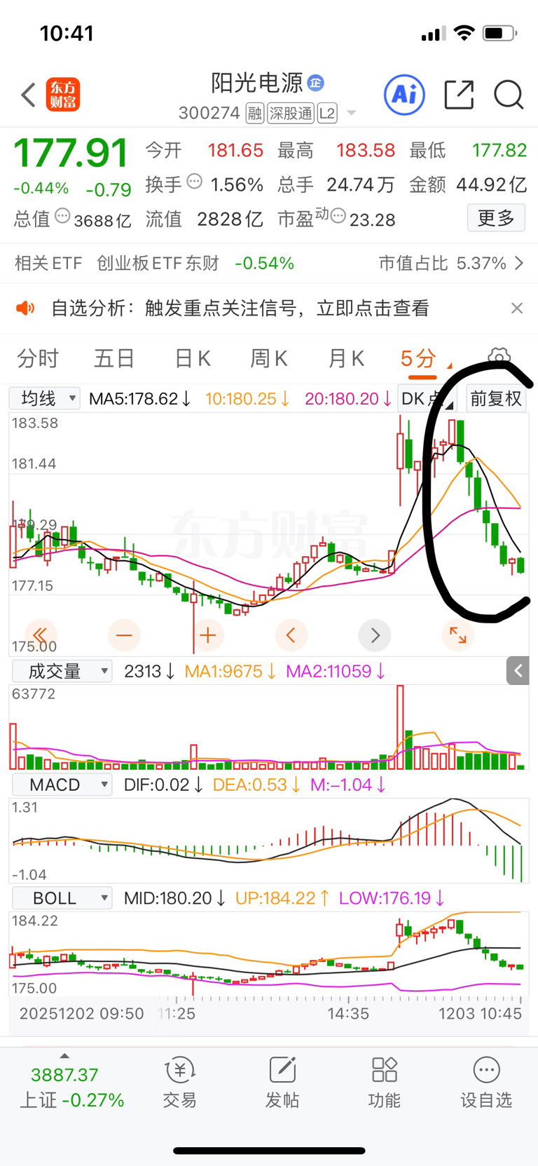 $阳光电源(SZ300274)$ 多么丝滑的5分钟做T指标线,每天如此
