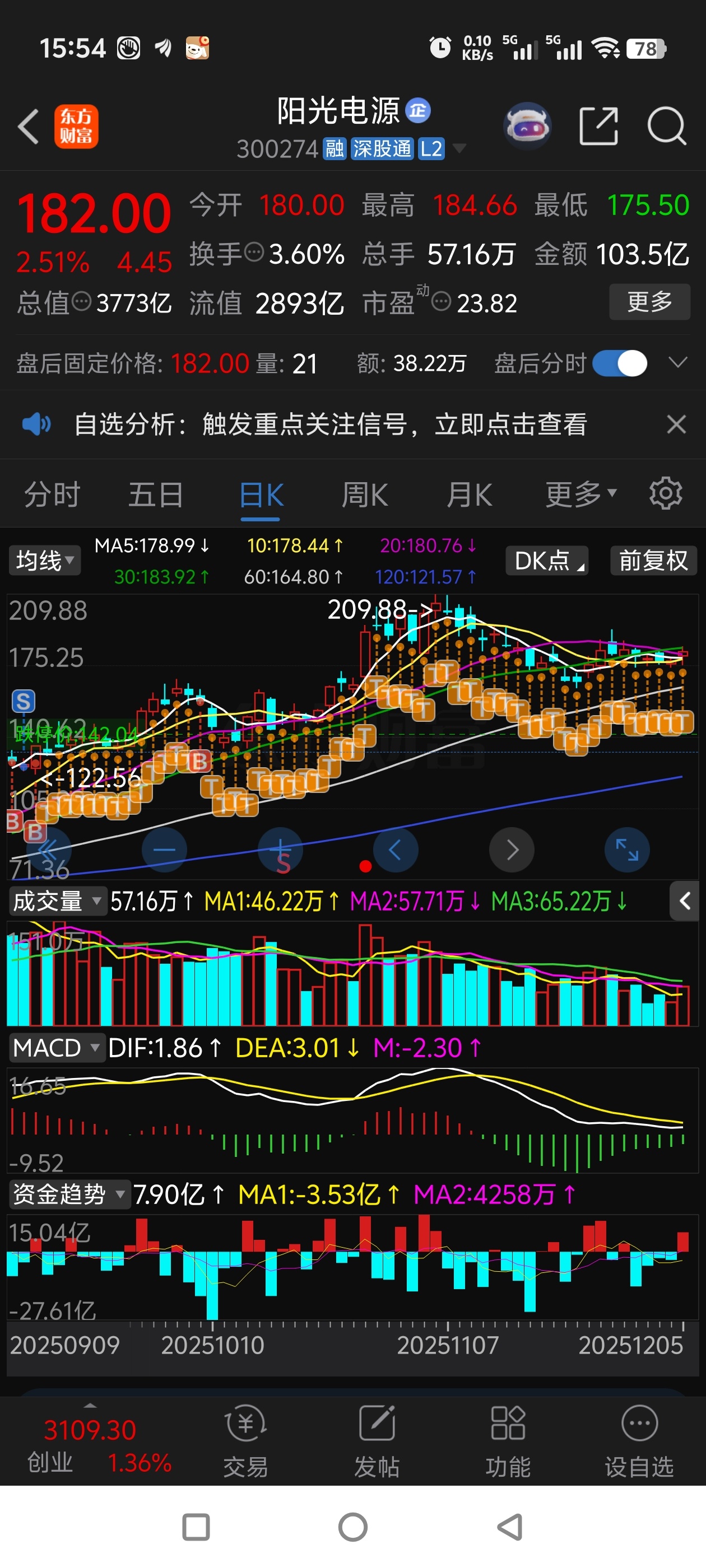 $阳光电源(SZ300274)$ 每天T得很累,其实上涨容易踢飞