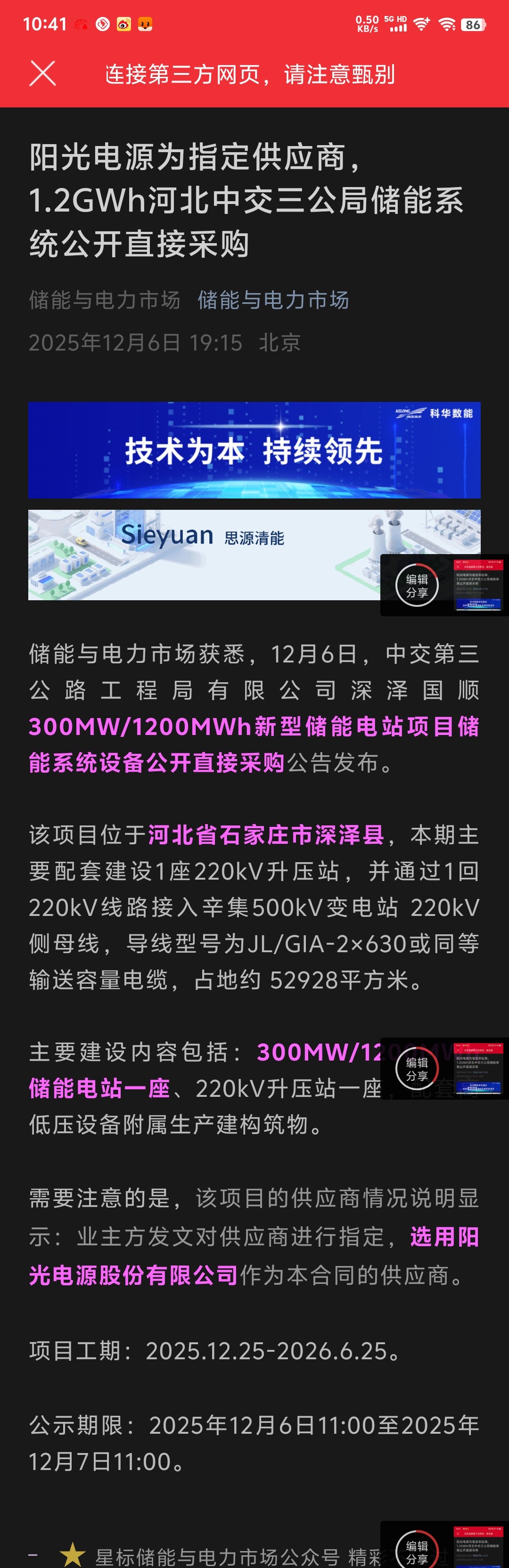 $阳光电源(SZ300274)$ 大利好,签大订单中交三局大储能能订单$上证指数(SH000001)$