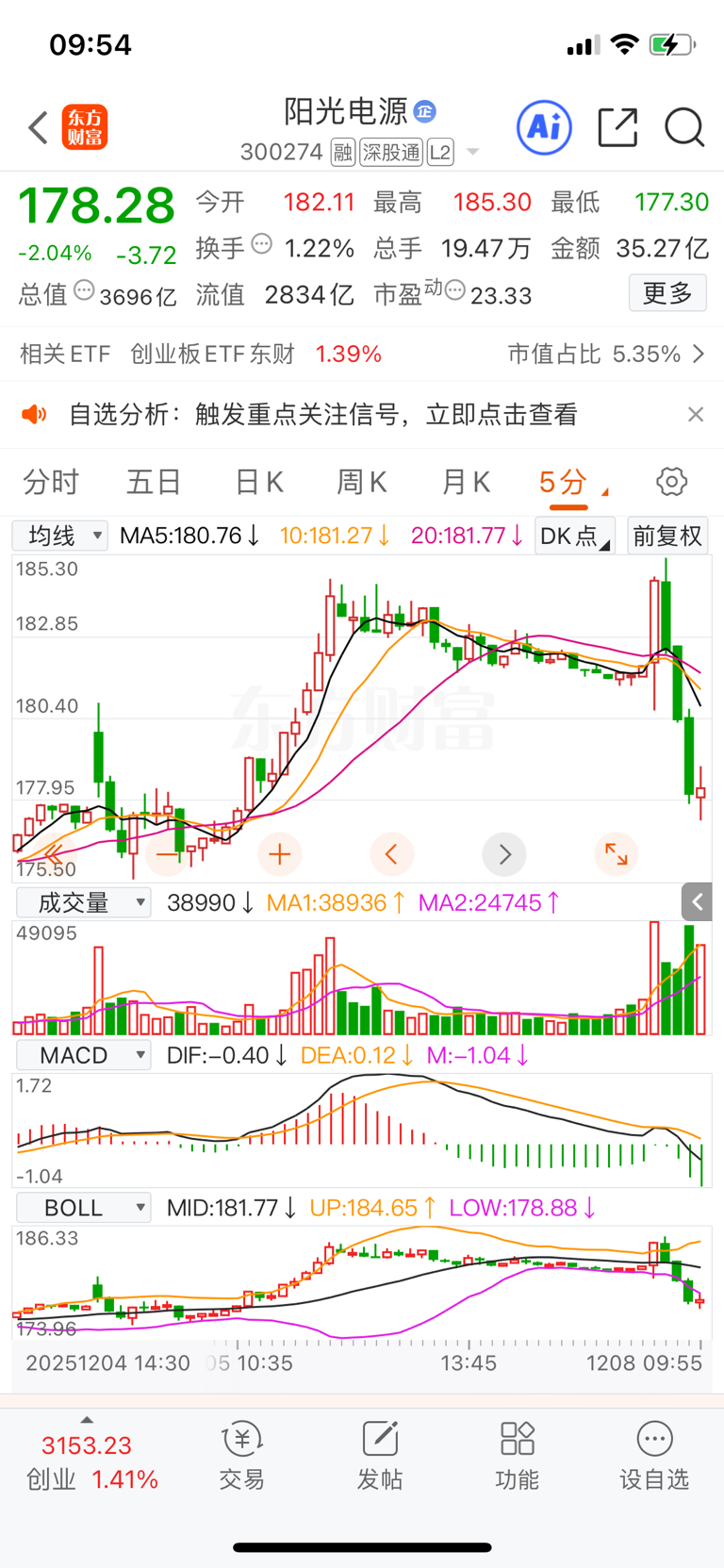 成交额靠前10位,只有你是跌的。5分钟线3根砸了20亿。优秀,全市场量化交易占比
