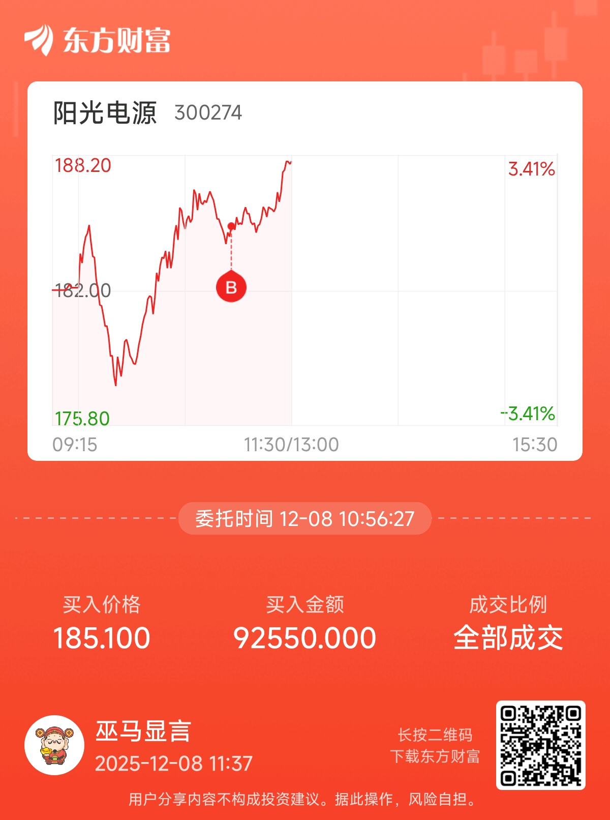 $阳光电源(SZ300274)$ 这个位置买的好忐忑呀 不会赔吧
