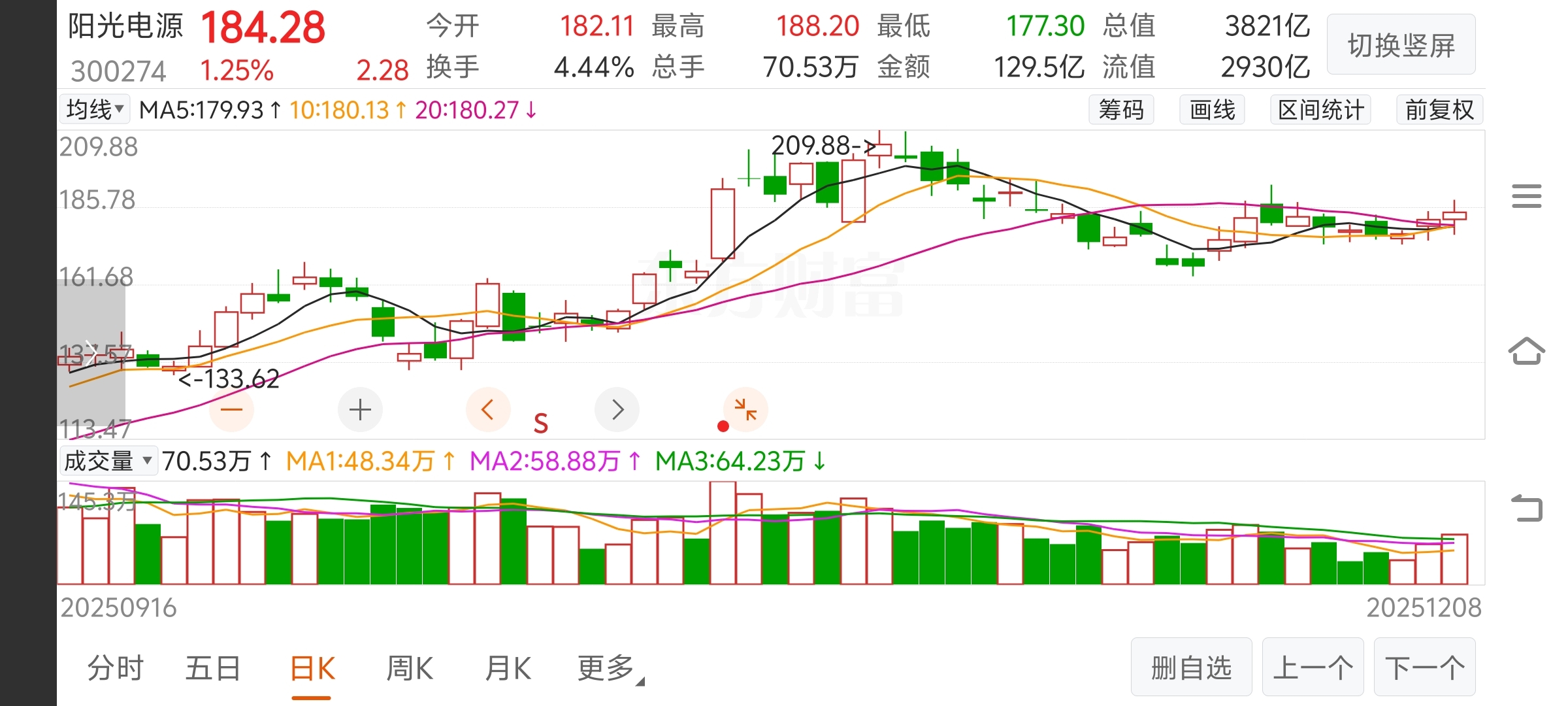 $阳光电源(SZ300274)$ 均线交错 温和放量 即将暴涨。