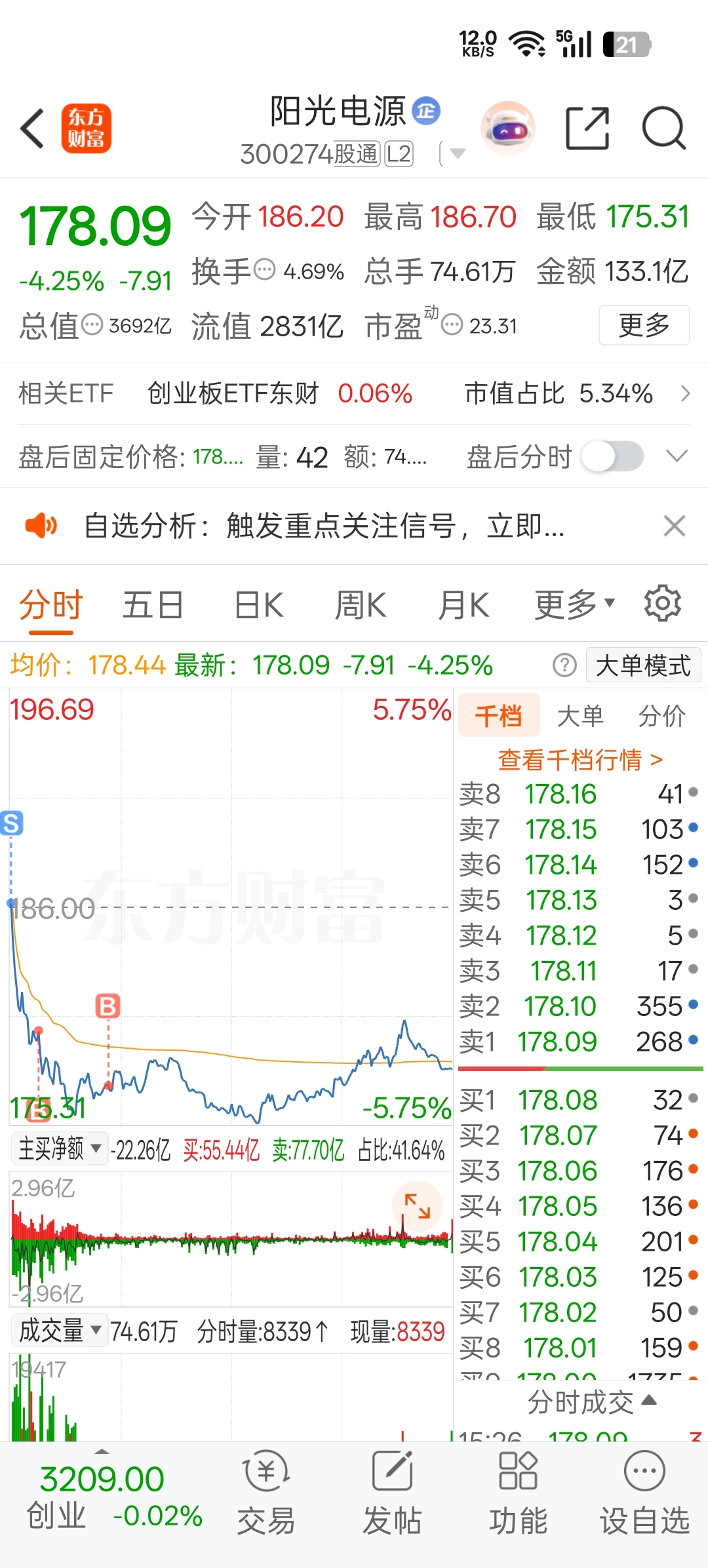 $阳光电源(SZ300274)$ 买点不太好,还是太急了