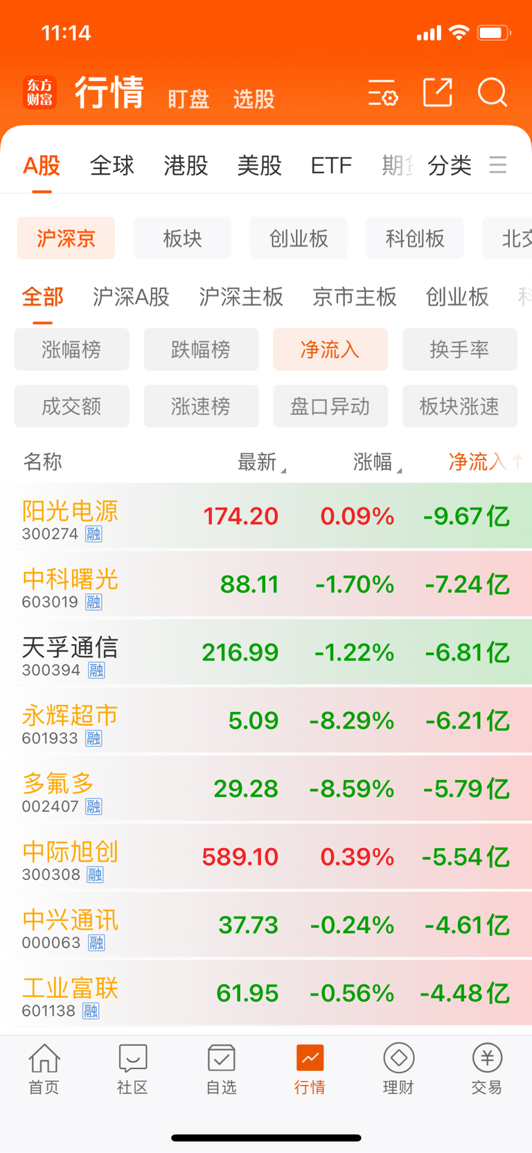 跟着A50和创业板指数被动拉起,全市场资金流出今天第一,近几日资金流出都是排前5