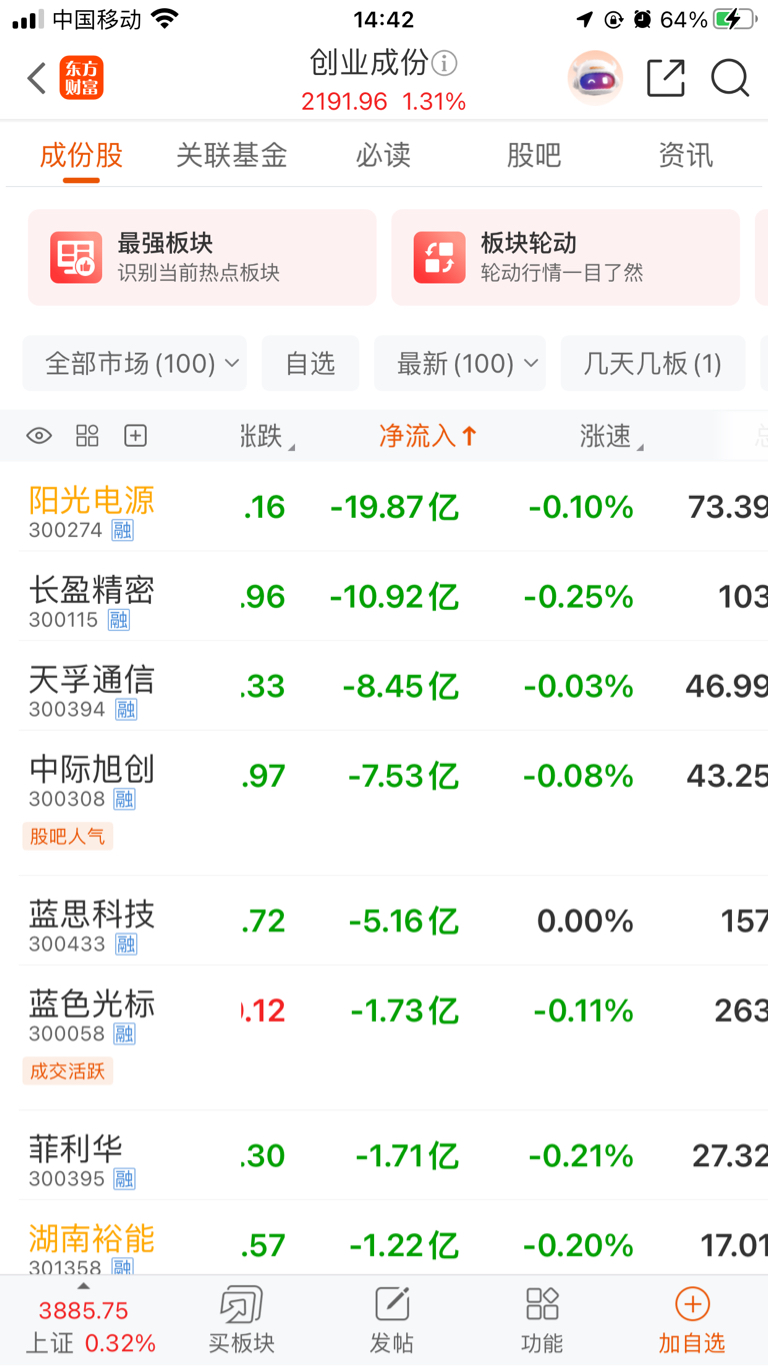 $阳光电源(SZ300274)$ 自己看,不想说啥,连续多少天创业板流出资金第一位的,资金被谁接盘了,散户