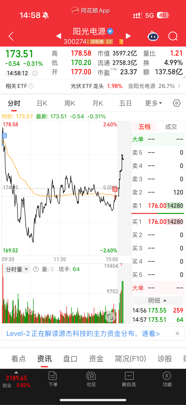 $阳光电源(SZ300274)$ 真是把我逼得没有办法。每天开盘卖。收盘买