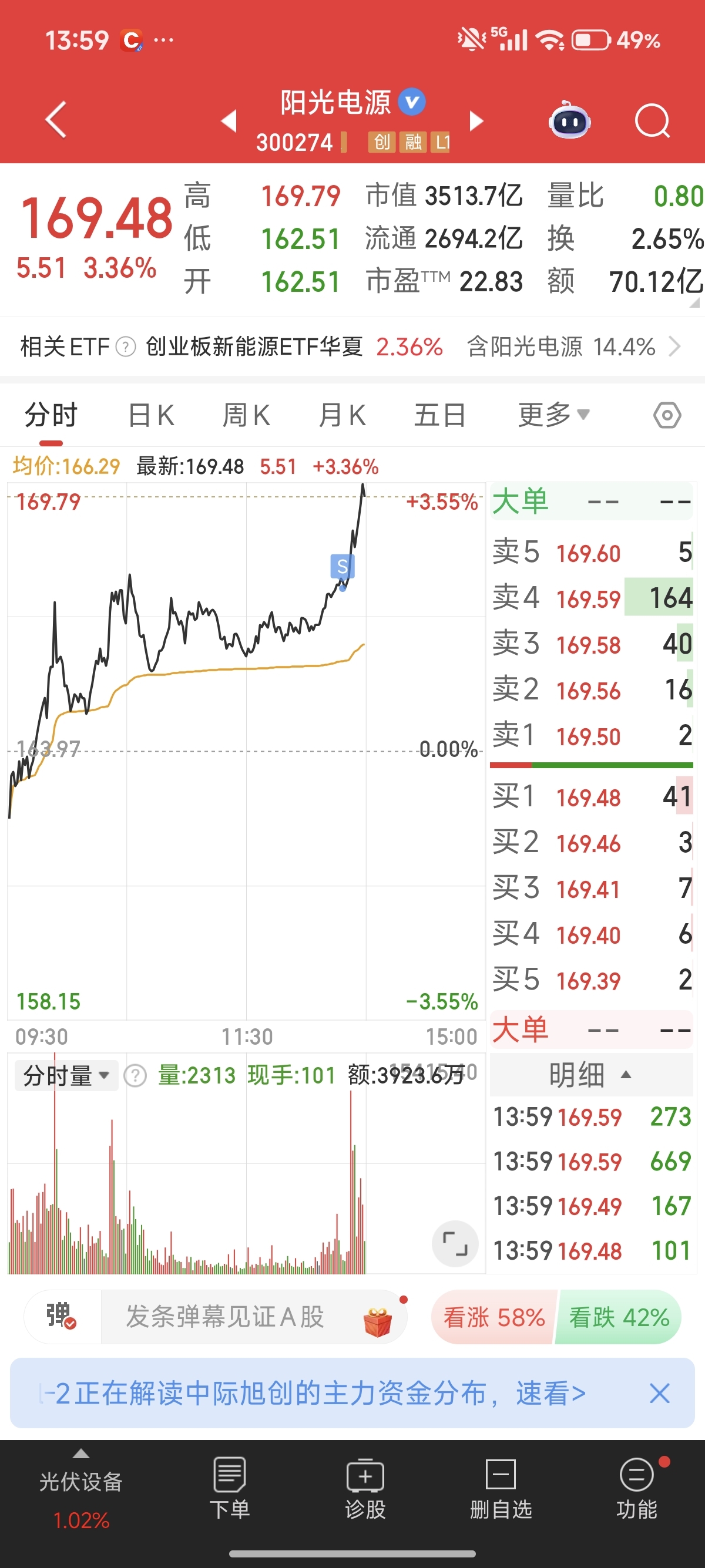 $阳光电源(SZ300274)$ 还真是有监控?卖了直接拉?