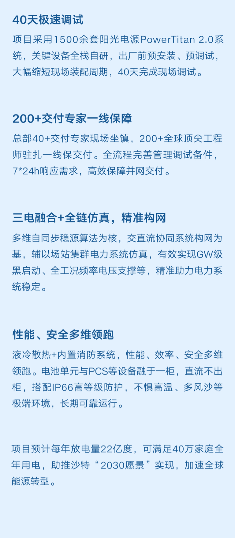 作为沙特“2030愿景”框架下的重要能源支撑项目,该储能电站并网后将产生巨大的社会效益。