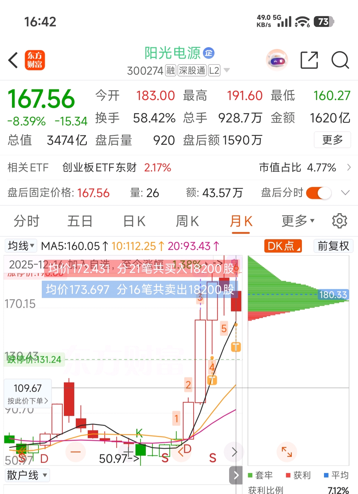 $阳光电源(SZ300274)$ 11月底卖飞了中际28个点,12月1号开始受罚来阳光磨练技术做出了15个点的超额收益,今天正式刑满释放