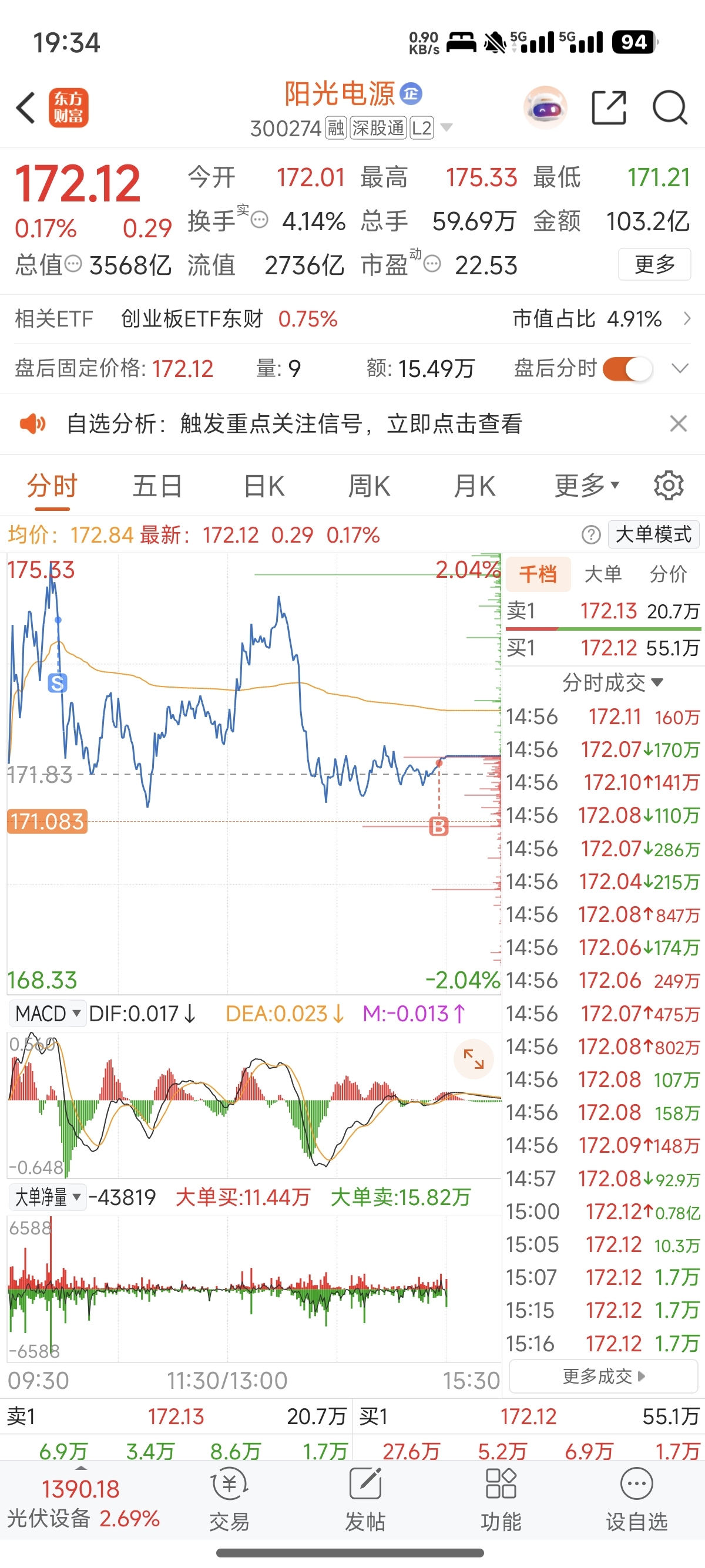 $阳光电源(SZ300274)$ 就得来回踢