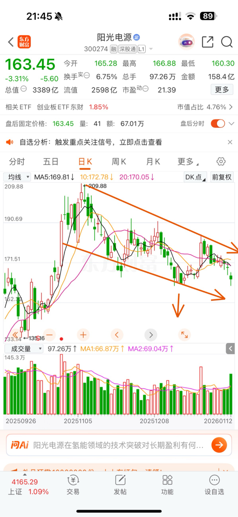 $阳光电源(SZ300274)$ 这不是典型的下跌趋势吗