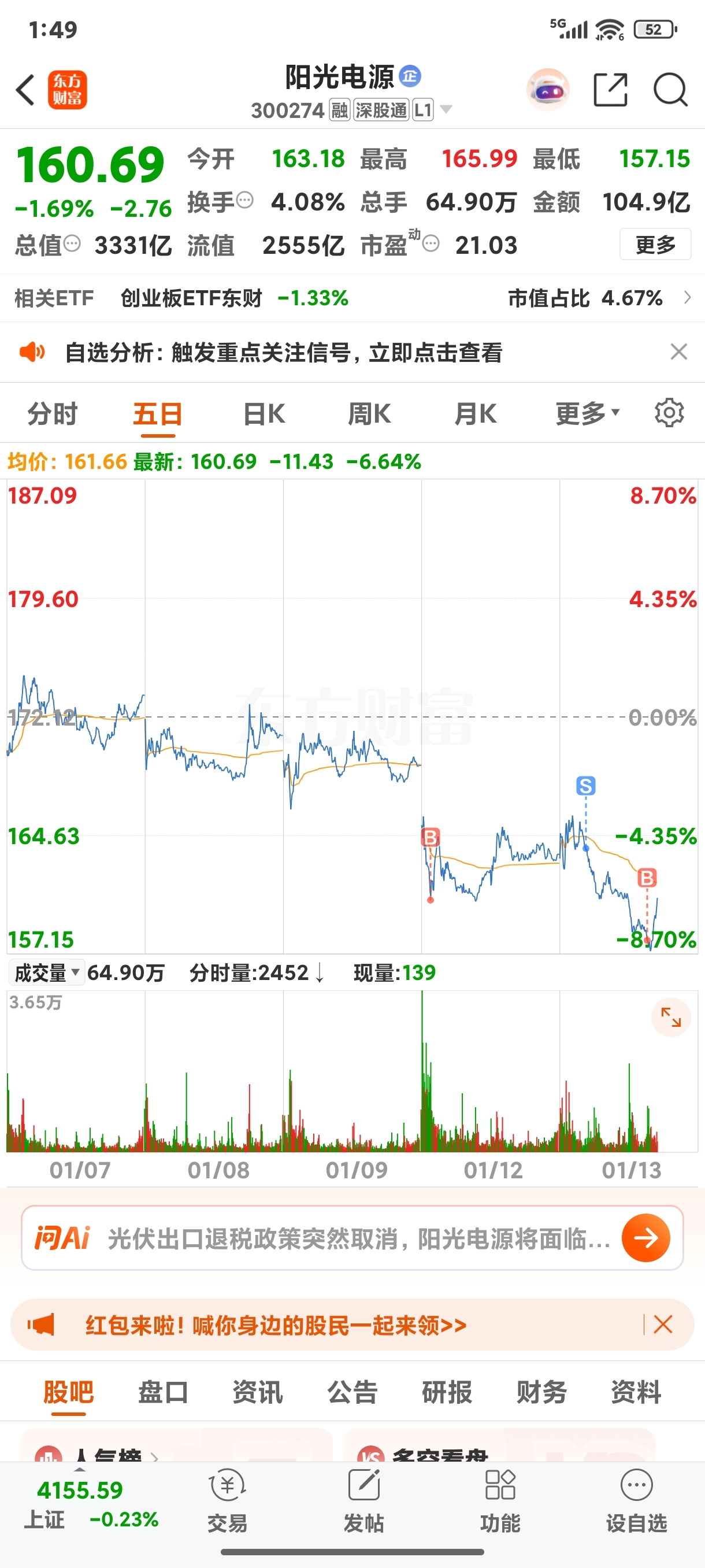 $阳光电源(SZ300274)$ 我钱少,玩得小