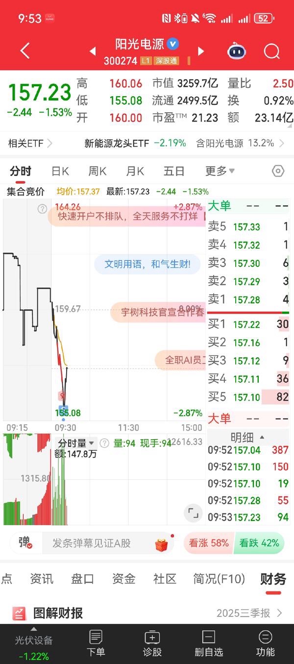 $阳光电源(SZ300274)$ 替我一个朋友问下,刚刚155卖的,还能买回来嘛