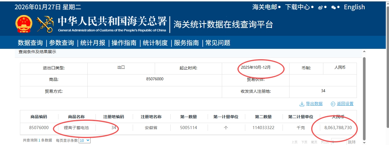 说明:当整个储能系统以电池为核心、作为完整设备出口时,通常归入此编码。一份英国海关的预裁定将包含电池的集装箱式储能系统归于此编码。一篇关于阳光电源的分析文章也指出,其储能系统中的电池部分受此编码影响。