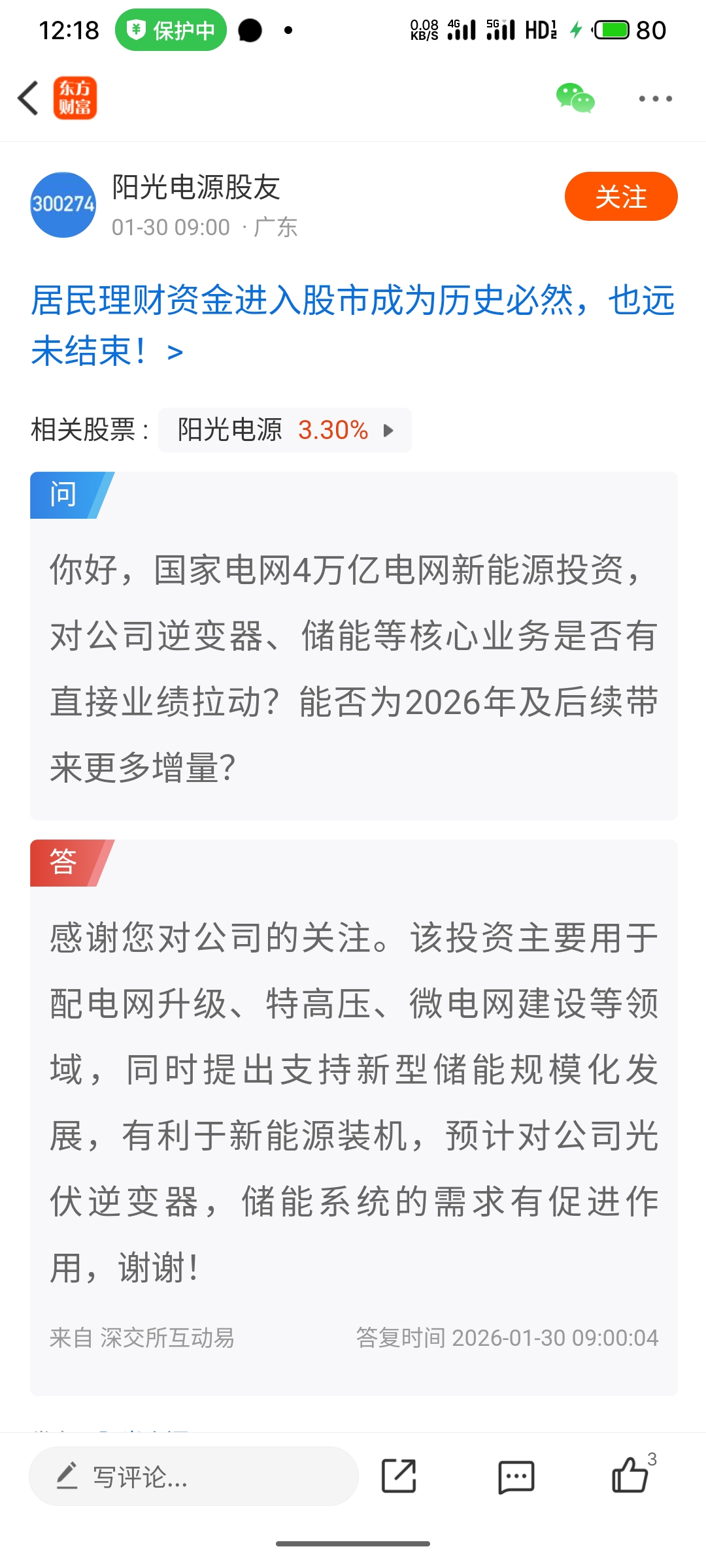 你好,国家电网4万亿电网新能源投资,对公司逆变器、储能等核心业务是否有直接业绩拉动?能否为2026年及后续带来更多增量?