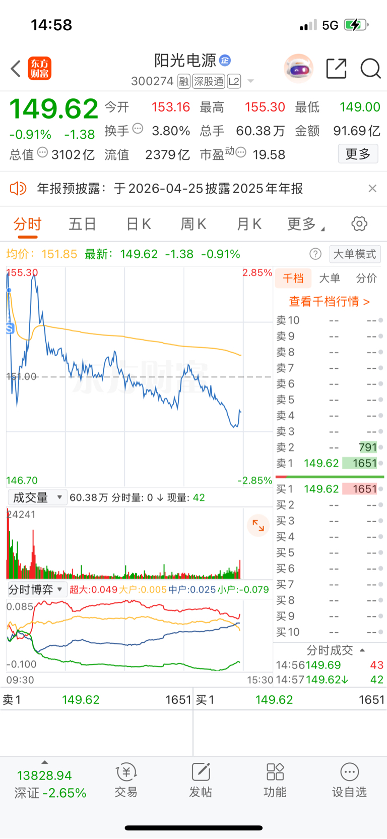 $阳光电源(SZ300274)$ 早上时价155,我挂154抢跑了