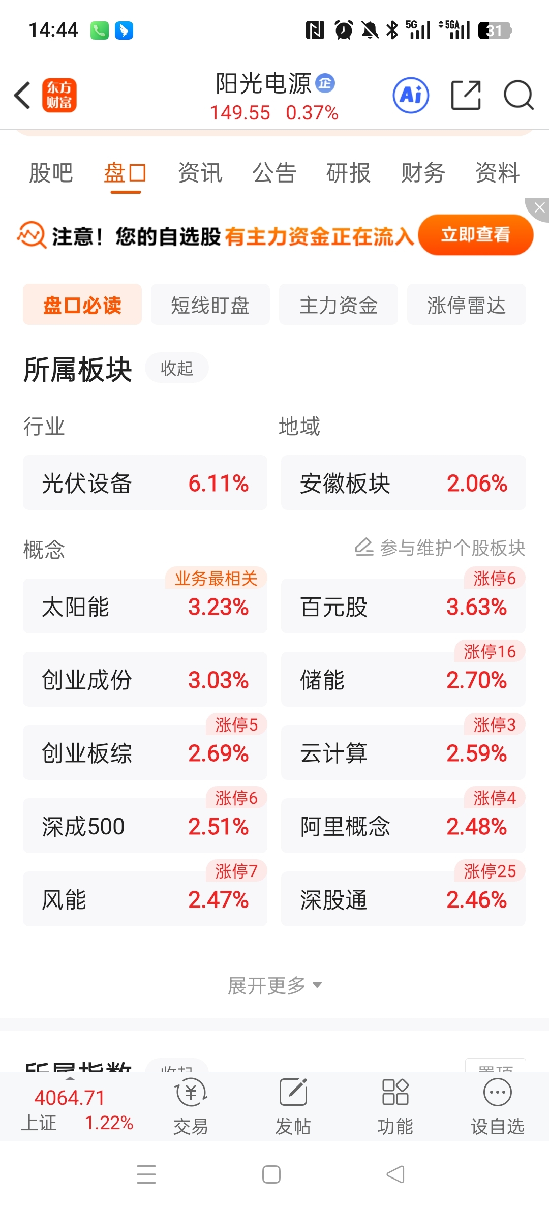$阳光电源(SZ300274)$ 板块涨了6个多点,真不是人啊
