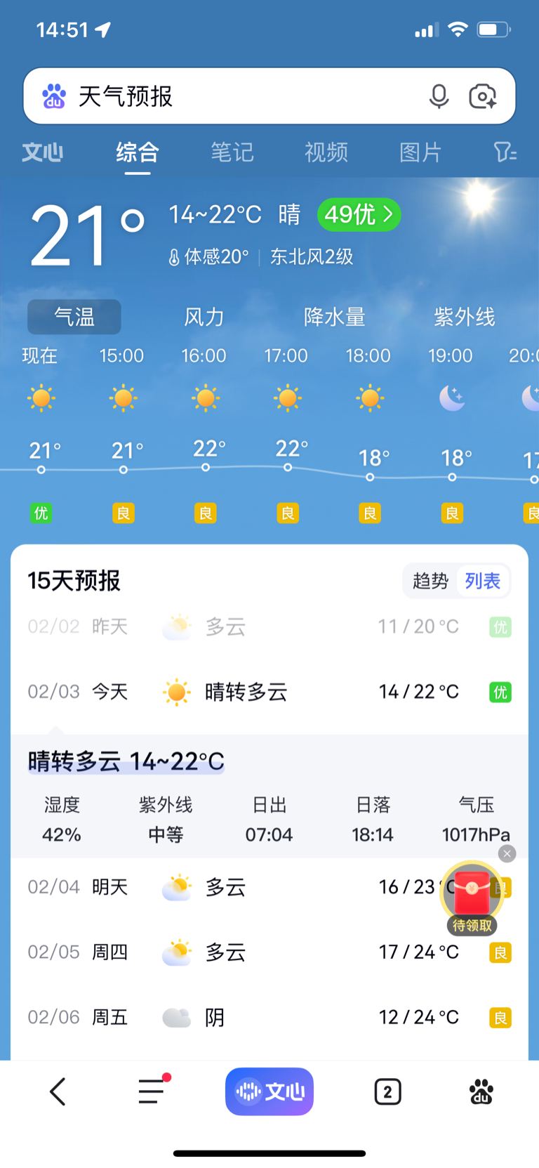 2月3日,晴,太阳出来了