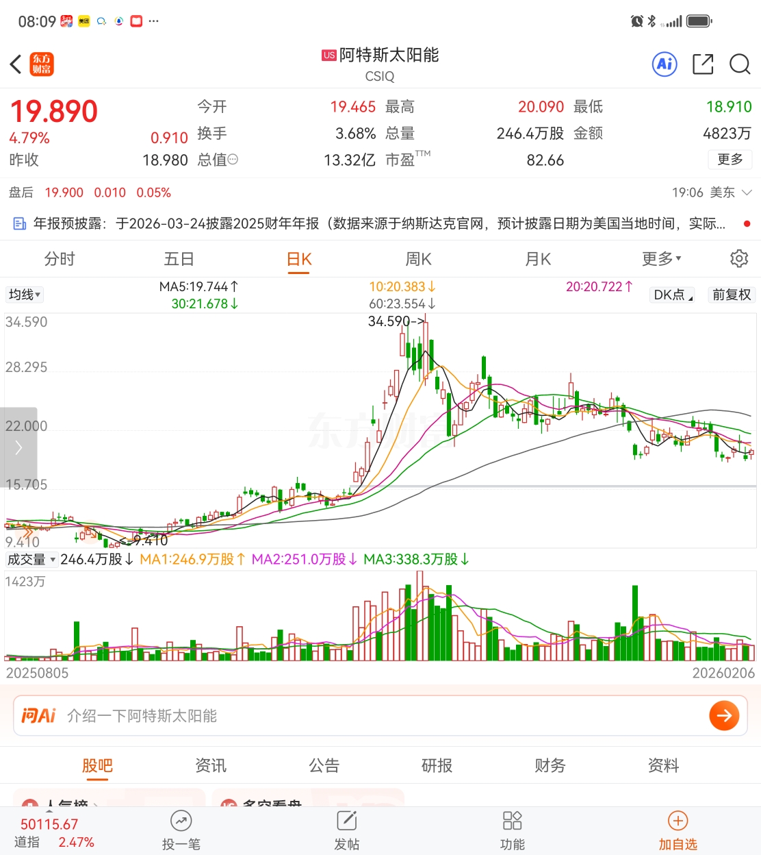 $阳光电源(SZ300274)$ 美股阿特斯储能大涨!9.10月熟悉的味道能回来吗?走势图都差不多!阳王年前给个红包,让大家过个好年!