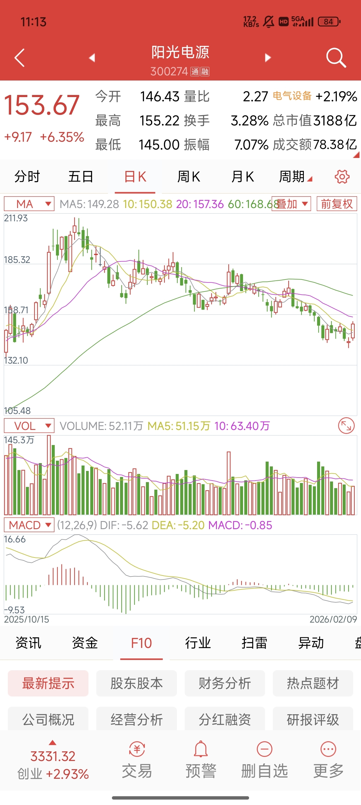 $阳光电源(SZ300274)$ 大胆加仓阳光电源,MACD多重底背离,出货基本完毕,接下来将走独立双头行情