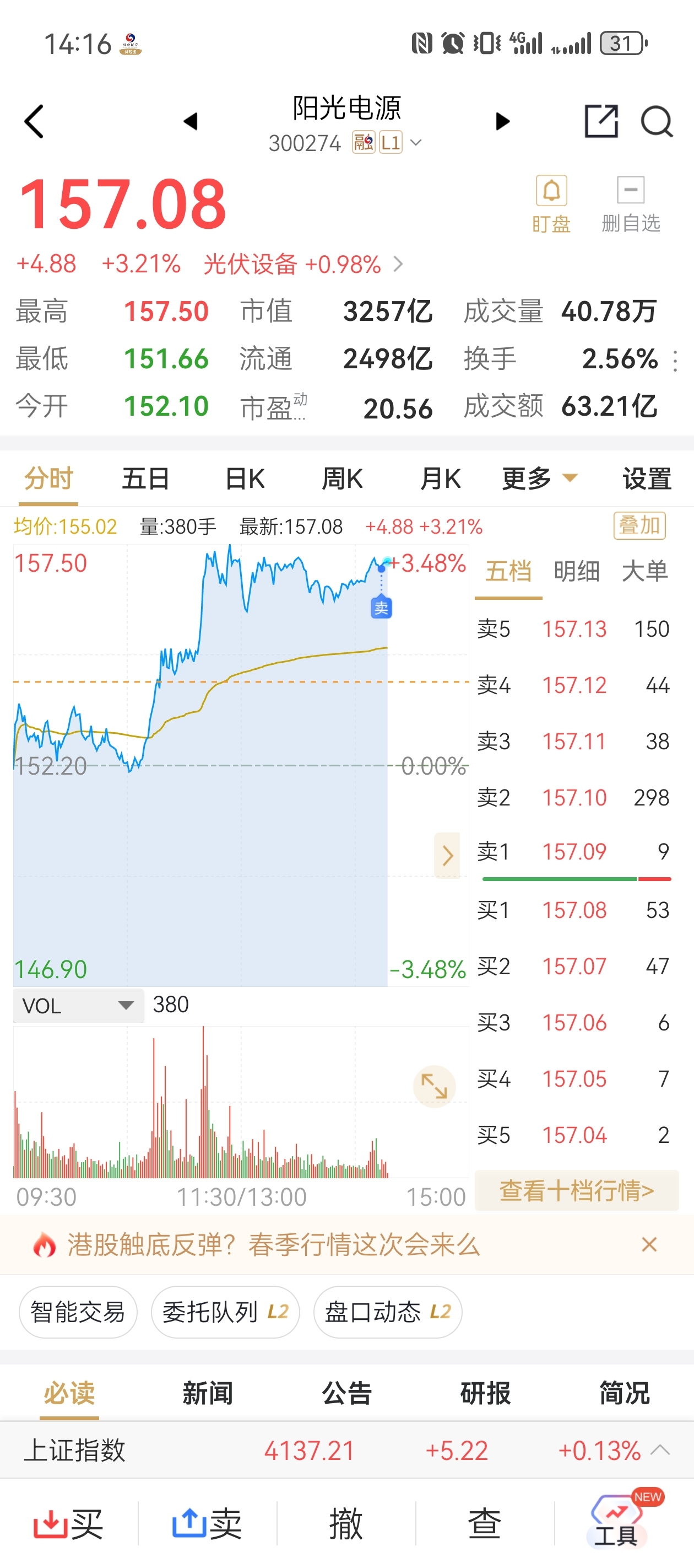 $阳光电源(SZ300274)$ 拜拜,空仓过节