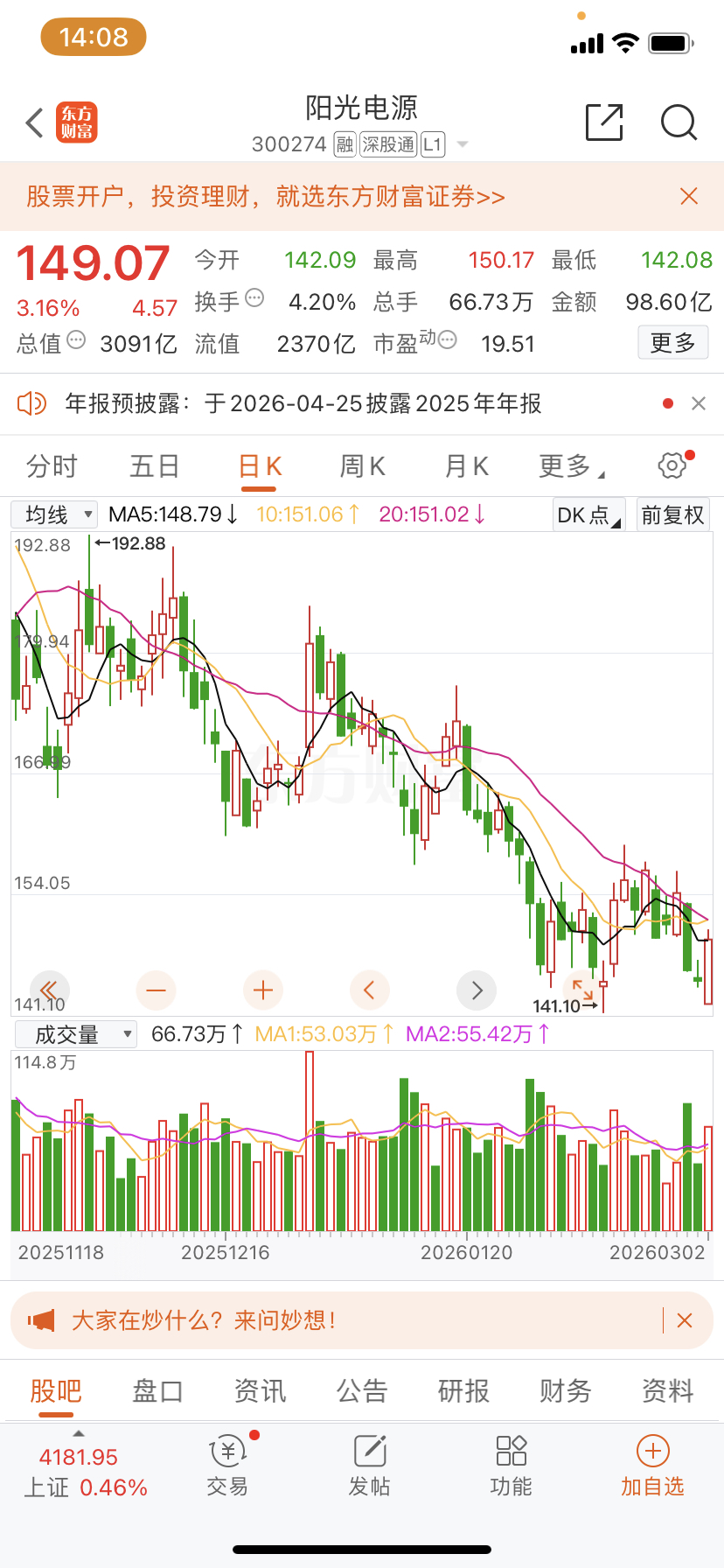 $阳光电源(SZ300274)$ 胜利永远是属于有点耐心的人。当时说的没毛病,即使短期,也看到了红太阳颜色了。漂亮,还记得我是什么时候 说的吗?