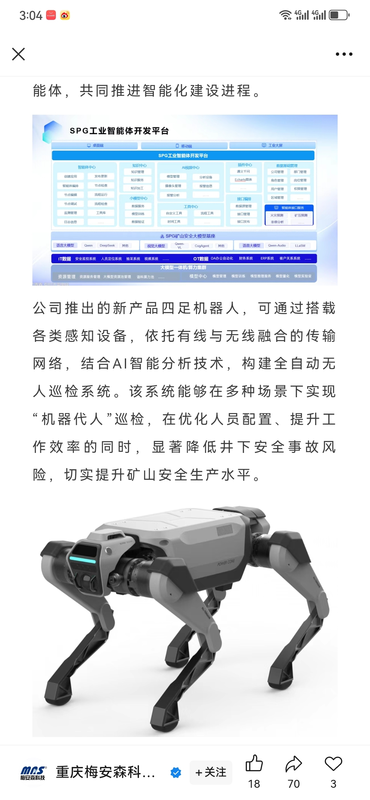 $力星股份(SZ300421)$ $超捷股份(SZ301005)$ $龙洲股份(SZ002682)$ 梅安森新产品矿山机器人