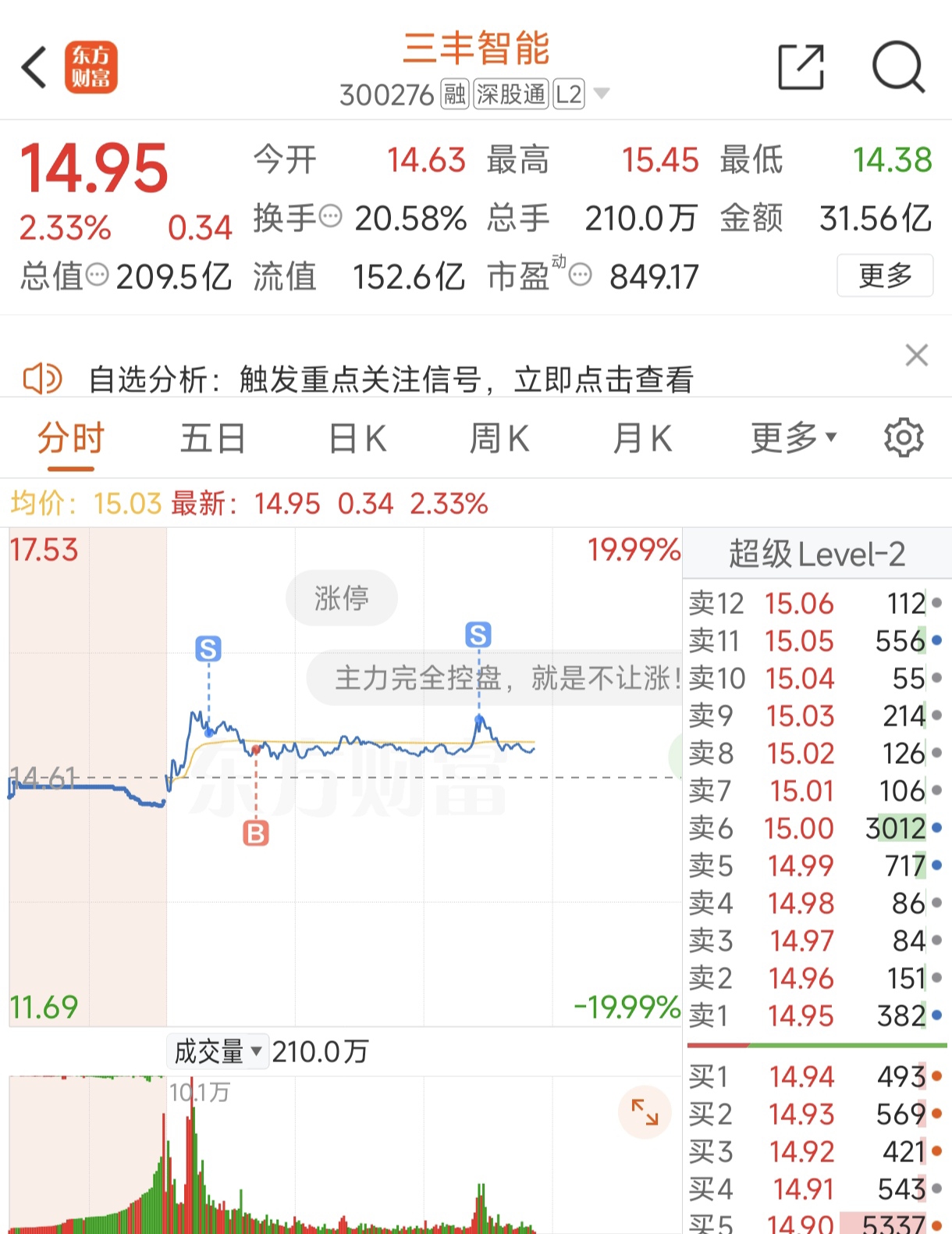 $三丰智能(SZ300276)$ 我不懂票,难道我还不懂大盘吗
