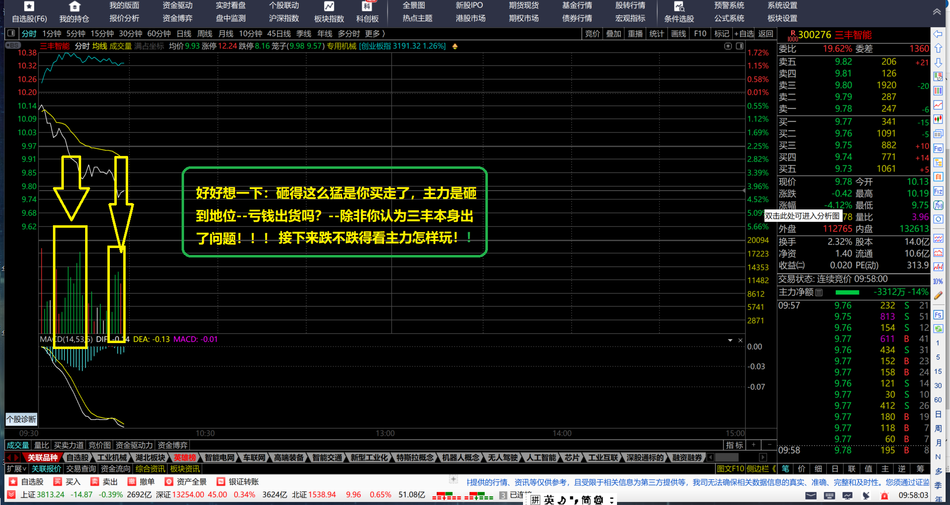 我KAO!---三丰这是主力派来的卧底吧!!一到关键时刻就出手--这一波洗盘是要命呀!!!