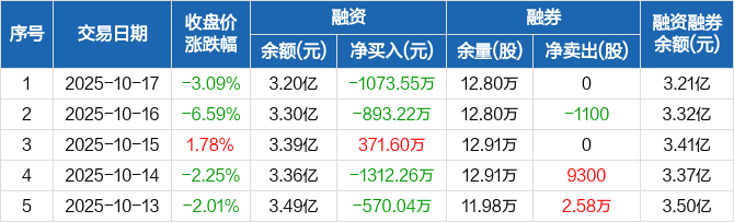 三丰智能:融资净偿还1073.55万元,融资余额3.2亿元(10-17)