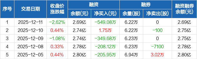 三丰智能:融资净偿还549.08万元,融资余额2.69亿元(12-11)