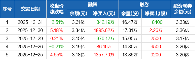 三丰智能:融资净偿还342.19万元,融资余额3.31亿元(12-31)