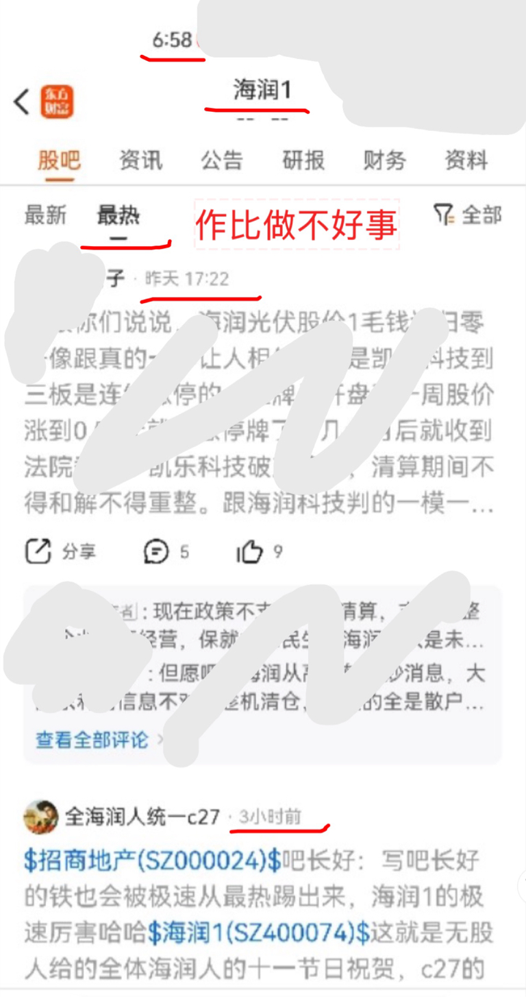 $海联讯(SZ300277)$ 吧长好:从昨天使君子就一直在海润1最热作比今天早上上来的截图6:58第五次作比置顶,显示它在海润1作比做不好事的能力,麻烦吧长解决一下这个读留哈哈哈哈哈麻烦了谢谢$海润1(SZ400074)$ $国投中鲁(SH600962)$