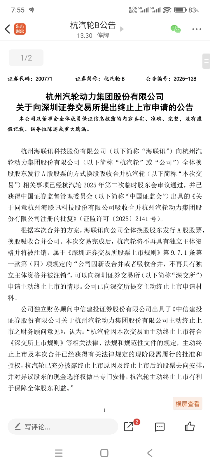 杭汽轮B,已公告终止上市,申请注销中了,深证通过后即转板成功!时间预计在三到四周