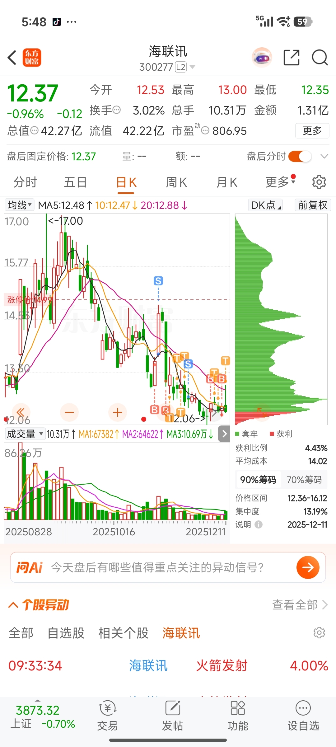 $海联讯(SZ300277)$ ttttt成量低,好t