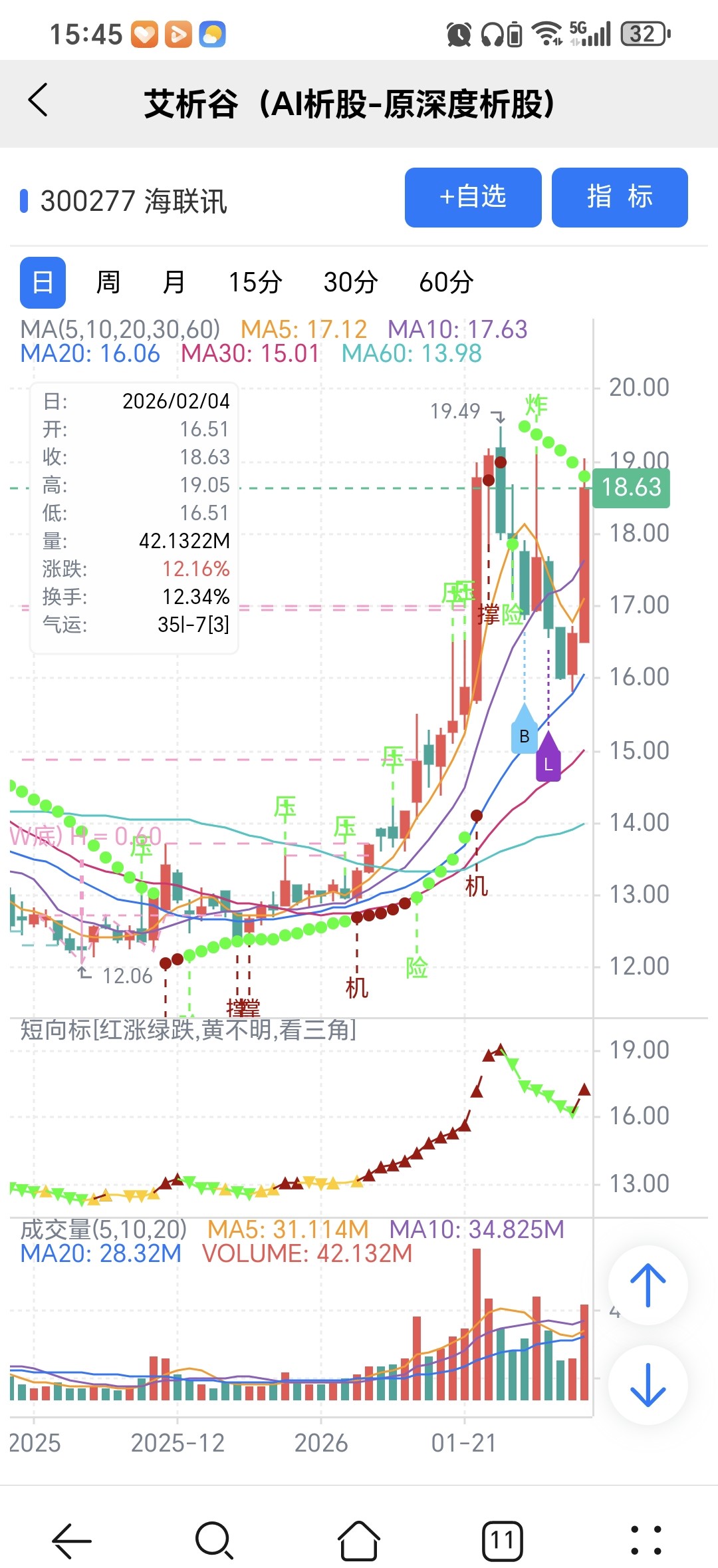 风险:股价下穿艾短波或红变绿、绿字。