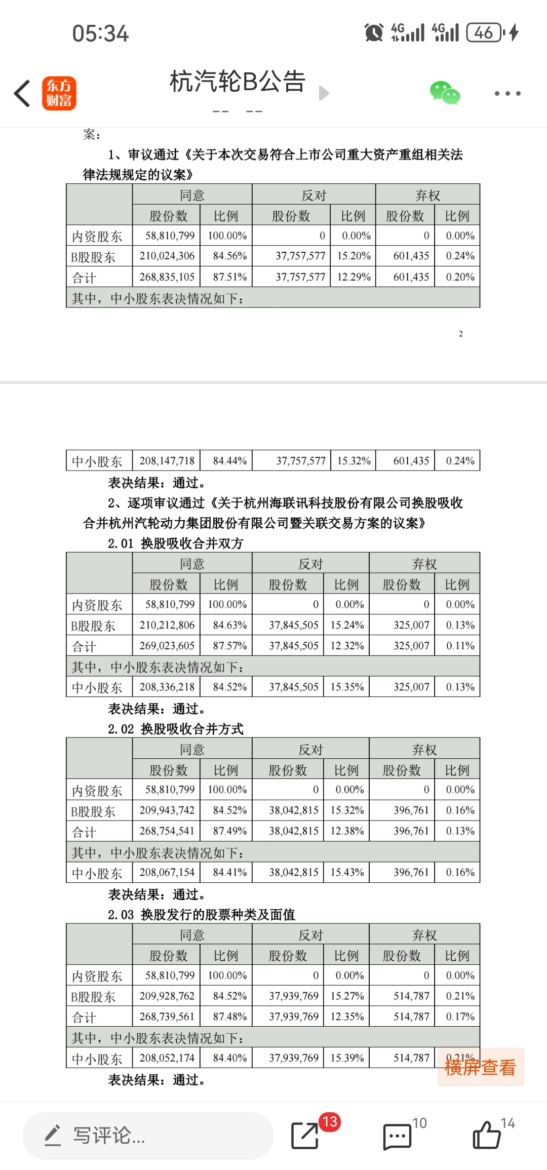 之前B股有大约4000万股反对,这部分反骨仔需要考虑