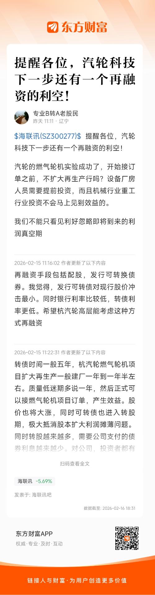 $海联讯(SZ300277)$ 提醒各位,汽轮科技下一步还有一个再融资的利空!