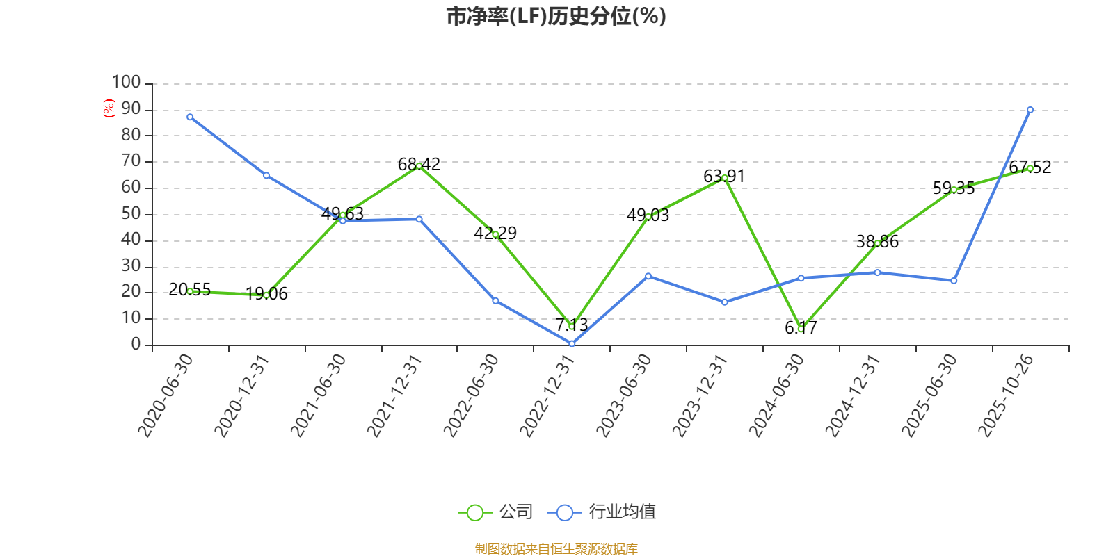 市盈率、市净率为负时,不显示当期分位数,会导致折线图中断。