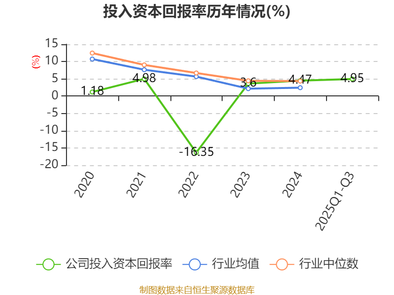 盈利能力方面, 2025年前三季度公司加权平均净资产收益率为6.52%,同比上升0.92个百分点。公司2025年前三季度投入资本回报率为4.95%,较上年同期上升0.85个百分点。