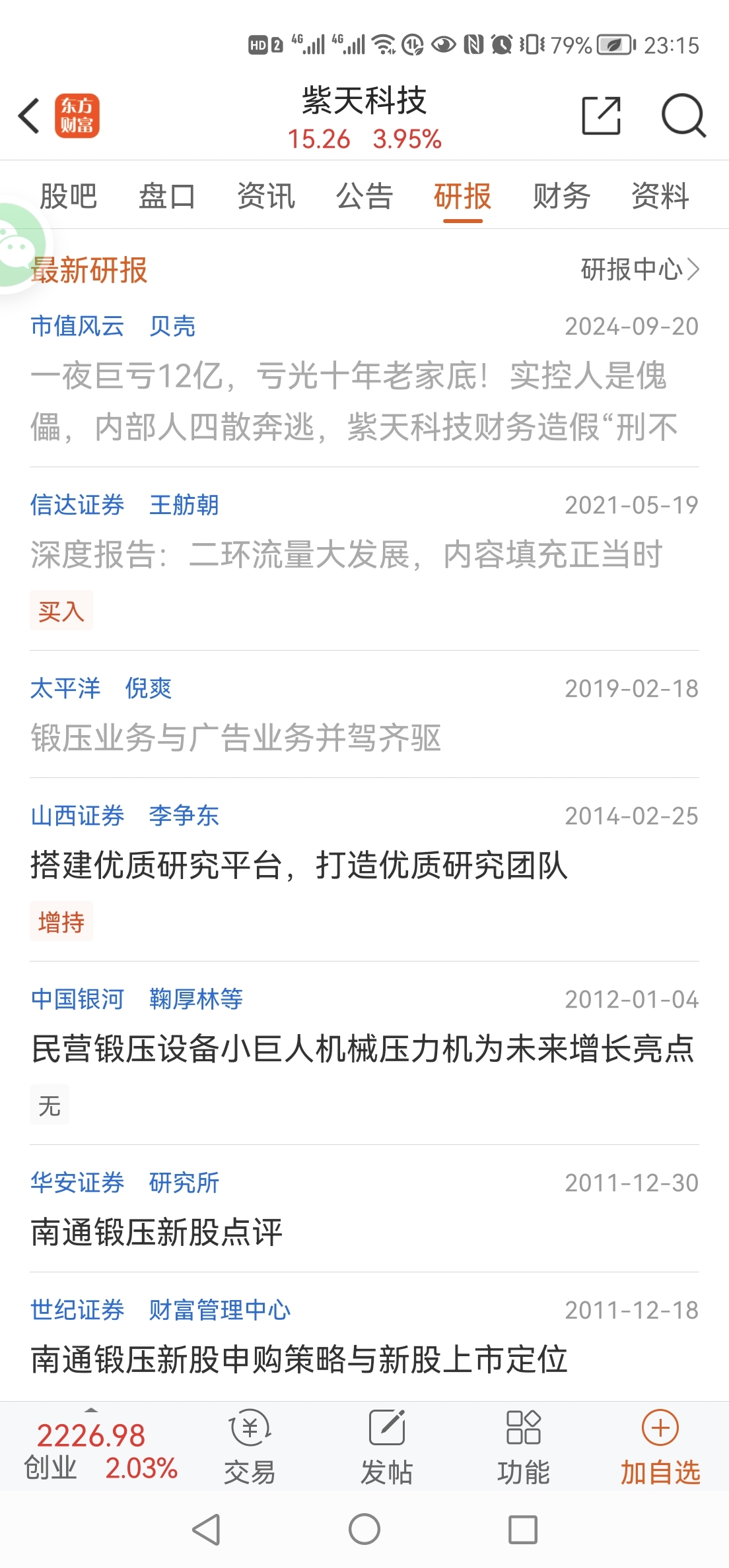 $紫天科技(SZ300280)$ 看研报数量就知道什么货色了,2017年至2023前三季度,业绩高增长期只有零星的几个吹票。有人吹票不一定是好股,普利、左江爆雷之前一堆人看好,但没人吹票的一定是垃圾。