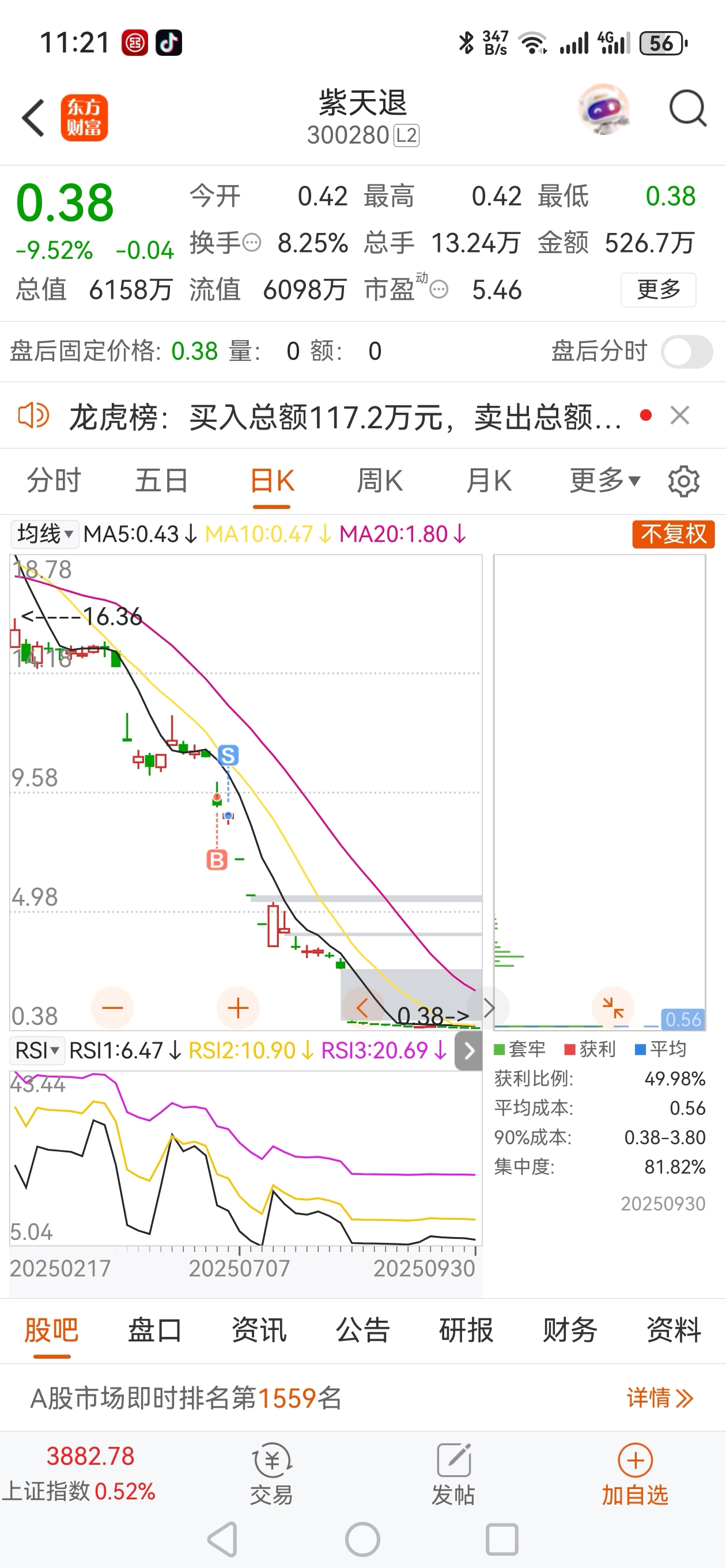 $紫天退(SZ300280)$ 天啊这都被我跑了