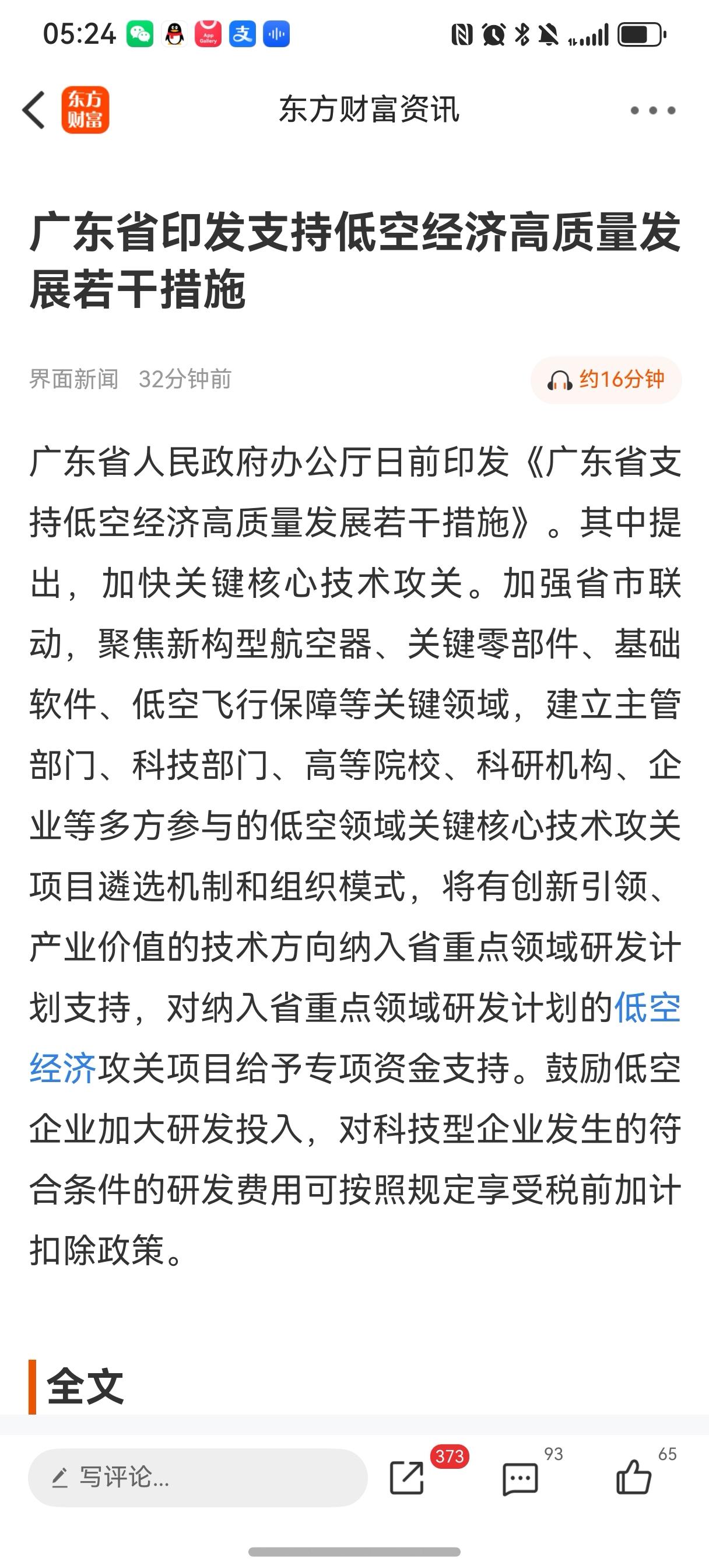 $苏交科(SZ300284)$ 广东省印发支持低空经济高质量发展若干措施,低空加深空加十五五规划,说的不就是苏交科吗