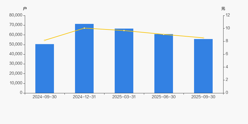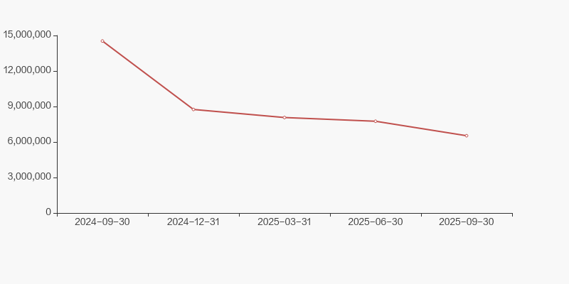 自2024年12月31日以来,公司股东户数连续3期下降,截至目前减幅为21.93%。2024年12月31日至2025年9月30日区间股价下降15.03%。